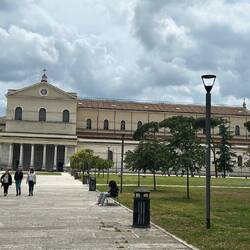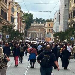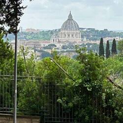 Da wir gestern Mittag an einem Mittwoch und somit dem Audienz Tag des Papstes in Rom ankamen, wimmelten naturgemäß 500 Millionentausende Menschen auf dem Petersplatz, im Petersdom, auf der Straße zur Engelsburg und sowieso ganz Rom emsig wie Ameisen plan- und ziellos umher. Uns selbstverständlich inbegriffen. Im Zeitraffer: Planloses suchen nach dem Ort, an dem wir unser Pilgerzertifikat bekommen, Hinweis: bei der Warteschlange beim Sicherheitscheck zum Petersdom anstellen, einreihen in die Warteschlange zum Einlass in den Petersdom, vorzeigen unserer „Greencard“ (Pilgerausweis) einer freundlichen Ordner Dame, diese wies uns an rechts an der Schlange vorbei zum Sicherheitscheck für VIP’s zu gehen. Dort die Erlaubnis erhalten unsere Rucksäcke bei den Sicherheitsleuten zu deponieren. Pilgerbüro > Pilgerzertifikat > einreihen in die Warteschlange zur heilige Tür des Petersdoms und durchschreiten der Selben (wir befinden uns im heiligen Jahr 2025 also ist diese offen, die nächste offizielle Gelegenheit dort durch zugehen wäre 2050, für mich wird das wohl schwierig werden ich müsste 90 werden hmmmm) https://de.wikipedia.org/wiki/Heilige_Pforte . Im Strom der Menschenmassen durch den Petersdom treiben lassen. Unterkunft aufsuchen das“ Spedale Divina Provvidenza di S.Giacomo e S.Benedetto Labre - Via dei Genovesi, 11B, in Trastevere“. Dort erhält man eine Fußwaschung mit einem angedeutetem Küsschen auf den Selben. Ganz der Tradition Jesu verpflichtet der seinen Jüngern am Gründonnerstag die Füße wusch. Anschliessen gabs ein gemeinsames Abendessen im großen Saal. Es waren dort so 15-20 Fuß-, Rad- sonstige Pilger zu Gast. Ein besonderer Pilger war ein Schweizer mittleren Alters der Anfang der 2000er Jahre für drei Jahre als Schweizer Gardist im Petersdom diente.