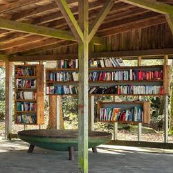 bei Connweiler. Eine große überdachte nach allen Seiten offene Hütte mit großer Bücherecke lädt zum Verweilen ein, so gönnten wir uns eine kleine Rast und ein Frühstück.