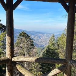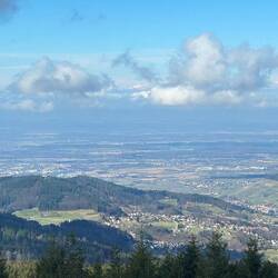 Ich schweife ab sorry. Ab hier geht es bis zum ca. 40km entfernten Haslach stetig aber sicher abwärts bis ins Kinzigtal. Was nicht heißt das keine Steigungen mehr dazwischen wären, so einfach ist’s nun auch nicht. Zu empfehlen ist beim Abstieg vom Schliffkopf unbedingt einen Abzweig zur 100m entfernten Aussichtsplattform mit Blick südlich über die Schwarzwaldhöhen, mit Blick bis zu den Alpen und westlich zu den Vogesen. Gute Fernsicht vorausgesetzt.