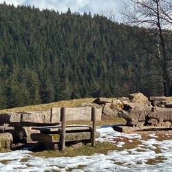 Auf dem Weg zum Hochgrad hatten meine Beine viel „Spaß“. Schneereste, durch die Sonne aufgeweicht, sollte ihnen nun bis zur Hornisgrinde viel Grund zur „Freude“ 😂geben. Ich hatte Mitleid mit ihnen und gönnte ihnen eine Pause in der Untersmatt Hütte „Zur grossen Tanne“ und mir ein Weizen und Gulaschsuppe.