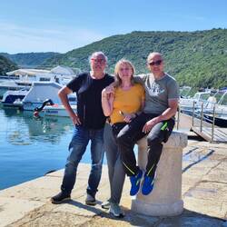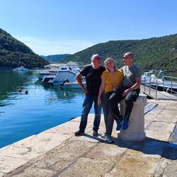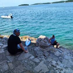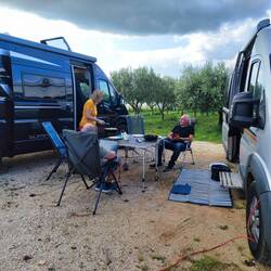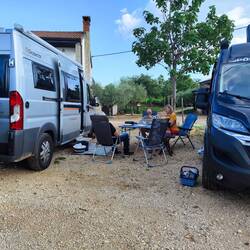 Wir haben angefangen am Limski Kanal. Leider war es da sehr voll weil da Hochzeit gefeiert wurde. Dann haben wir uns ein nettes Plätzchen zwischen Oliven gesucht und nun wird gegrillt