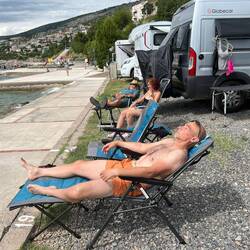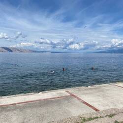 Heute nur eine kurze Strecke zurückgelegt, ca 40 km von Selce nach Senj. Haben einen schönen Platz direkt am Wasser gefunden und einen Badetag eingelegt.