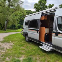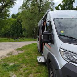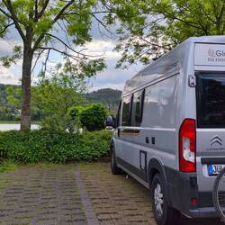 Schönen kostenlosen Stellplatz direkt an der Mosel gefunden. Hier werden wir 2 Tage bleiben und morgen ist eine Radtour geplant.