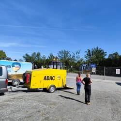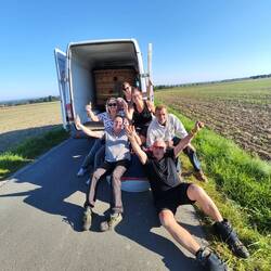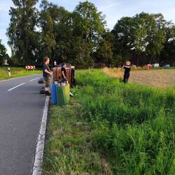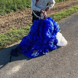 Schnelle Fahrt mit perfekter Landung. Leider gab es keine nahegelegene Zufahrt auf's Feld. Also haben wir am Straßenrand eingepackt