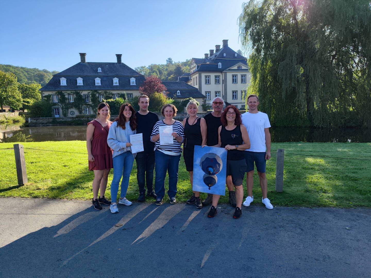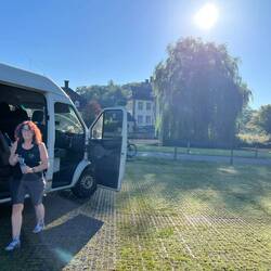 Mein Schatz...bester Pilot, mit Punktlandung auf den kleinen Parkplatz von Schloss Körtlinghausen
