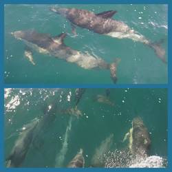 Vandaag vroeg uit de veren! Om kwart voor 8 moeten we in de haven zijn, want we hebben een toer geboekt door de ‚Bay of Islands‘ waar niet alleen veel eilanden te zien zijn, maar ook dolfijnen als we geluk hebben. Ze hebben ons gelokt, omdat je blijkbaar ook met de dolfjnen mag zwemmen…spannend! We zijn op de boot met 18 man en 2 van de crew. Niet vol, dus genoeg plaats voor iedereen op de boot, vooral op het voordek. Daar zitten we bijna de hele toer, want de zon schijnt (maar evengoed fris…) en vooral omdat we willen er gelijk bij willen zijn op het moment dat er dofijnen ‚gespot‘ worden. Na een goed uur is het zover… een groep ‚Bottlenose‘ dolfijnen, fantastisch! Ze zwemmen om ons heen. We moeten zwaaien en geluiden maken, dan spelen ze blijkbaar graag. Maar we zijn eerst veel te druk met foto’s, filmen en kijken! Er zijn bepaalde regels waaraan men zich houden moet voordat men met dolfijnen mag zwemmen. In dit geval mogen we niet, omdat er een baby bij is… ooohhh :o( Ook de tijd dat de boot erbij mag blijven is begrenst tot ca. 15 min…. Nou goed, we varen weer verder, een beetje meer richting open zee, verder weg van de eilanden. En ineens komt ons een 2e groep dolfijnen tegemoet! De ‚common dolphin‘ deze keer en wij hebben ze niet gevonden, de dolfijnen hebben ons gevonden. En deze willen echt spelen, geweldig om te zien! Ze zwemmen links, rechts, achter ons, voor ons… Helaas kunnen we ook deze keer niet zelf in het water, de open zee is te gevaarlijk en de dolfijnen zijn ook veel te snel voor ons. Maar het is zowiezo grandioos! Echt fantastiche momenten!!
