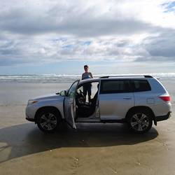 Jana heeft haar oude internationale rijbewijs bij (wat vreemd genoeg nog veel meer op z’n Duits is als het normale…zoveel voor internationaal??), maar ik heb er geen en wil/moet natuurlijk ook rijden in die vele weken. Jana had gelezen dat een vertaling snel per email aangevraagd kan worden. Maar dit buro is hier in Auckland, en dicht in de buurt van waar we zijn, dus we besluiten dan maar direct daar naar toe te gaan. In ongeveer 40 minuten heb ik voor 60 NZ$ mijn vertaling in de hand. Nu weer terug naar de autoverhuurder om het contract aan te laten passen. Jana vraagt in de tussentijd gelijk nog even om de auto vanbinnen schoon te maken, want dat was duidelijk nog niet gebeurd… dan snel de bagage uit het hotel ophalen en dan zijn we eindelijk onderweg… op naar de Highway.