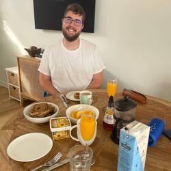 Wir stellten uns einen Wecker, weil wir den Tag nutzen wollten, um Sydney zu erkunden. Anita zauberte ein leckeres Frühstück mit kleinem Zimtdonut als Geburtstagskuchen. Dazu gab es Mango und Kaffee. Kaum saß ich am Tisch streckte mir Anita ihr Handy entgegen und meine Eltern grinsten mich per Whatsapp-Video-Call an. Meine Mutter wollte mir noch nicht gratulieren, weil es in Deutschland noch nicht soweit war. Und gleichzeitig war es wunderschön sie zu sehen und ihre Stimmen zu hören. Sie erkundigten sich nach unseren Plänen und es gab eine kurze Führung durch unser tolles Airbnb.