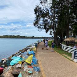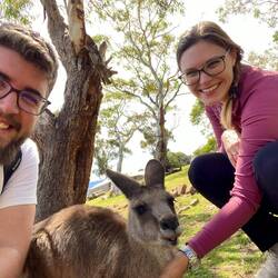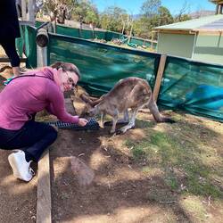 Wir befinden uns in der Stadt namens Sanctuary Point. Dort wachen wir am Morgen auf und machen uns Frühstück. Wir haben Melone, Eier und Bacon. Nachdem wir uns gestärkt haben, packen wir unsere Sachen zusammen. Während wir alles im Auto verstauen, kommt die Besitzerin zu uns. Ich bedanke uns, dass sie uns den Tipp mit dem Golfplatz gegeben hat. Wir hätten niemals gedacht, dass wir dort so viele Kangaroos sehen werden.