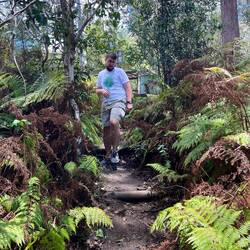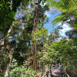 Wir aßen noch gemeinsam zu Mittag bevor wir die Wanderung fortsetzen. Wir legten beim dortigen Klohäuschen noch eine Stopp ein. Als ich dort wartete schoss ein Wallaby aus dem Unterholz heraus, erschrak bei meinem Anblick und sauste davon. Ich glaube jeder kennt es, wenn Hunde oder Katzen zu schnell dran sind und anschließend auf Fließen oder ähnlichem die Kurve nicht erwischen und fast ausrutschen. Genauso sah das Wallaby auf dem Kies aus. Nach kurzem konnte ich es bereits nicht mehr sehen. Mit ihrem Fell verschmelzen sie so gut mit der Natur.