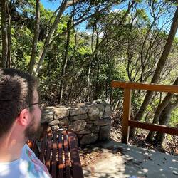 Wir kommen zu einer Hängebrücke, die zuvor leider ein Warnschild hat, dass ein Weg wohl blockiert sei. Hoffentlich nicht den, den wir gehen wollten. Wir überquerten die Hängebrücke, wo mir etwas schummrig wurde, während Anita extra wackelt. Auf der anderen Seite kamen wir an einem kleinen Kaffee vorbei, wo wir uns zwei Cappochinos mitnahmen. Von dort gingen wir noch 2 Minuten und mussten leider feststellen, dass unser angepeilte Pfad wegen herabgefallenen Felsen derzeit gesperrt wurde. So gab es nur zwei Optionen: Entweder wir laufen zurück oder wir laufen einen sogenannten „Zig-Zag-Pfad“ den unsere Vermieterin jedoch auf der Karte als „schwierig“ markiert hatte. wir fanden den Anfang und es waren Steinstufen. Keine einheitlichen Stufen, aber jetzt auch nicht schwierig. Wir dachten wir probieren es einfach mal. Nach 20 Minuten waren wir durch und hatten einen schönen Aussichtspunkt mit dabei. Auch hier hatten wir das Glück den Pfad von der richtigen Seite her zu gehen. Anderes herum wären es viele Stufen mehr aufwärts gewesen.