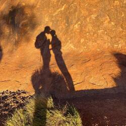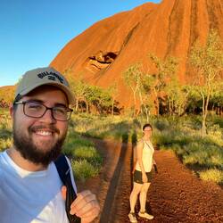 Wir hatten den Fels fast für uns alleine. Als wir uns zurück zum Auto begaben, kam uns eine Gruppe von Asiaten entgegen. Sobald wir mit dem Auto losfuhren, kam uns eine weitere riesige Touri-Truppe entgegen. Kurz vor dem Highway kam uns noch ein Bus voll mit Touris entgegen. Wir haben den perfekten Zeitpunkt erwischt.