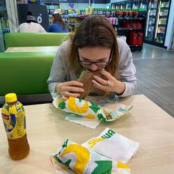 Als wir zurück am Ausgangspunkt waren, klaute mir Anita das Handy. Sie meinte ich dürfe nicht schauen und sie sucht etwas raus.