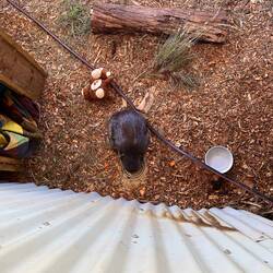 Zuletzt gingen wir zu dem Echidna. Dabei handelt es sich grob gesagt um eine Mischung aus Igel und Ameisenbär. Sie sehen unglaublich süß aus und können sich wie Igel zusammenrollen. Gleichzeitig haben sie ein Fell, sodass sie auch flauschig wirken. Sie können eine bis zu 18 cm lange Zunge haben, mit der sie nach Ameisen greifen können. Sobald sie einen Bau gefunden haben, können sie die Zunge bis zu 100 Mal pro Minute in den Bau fahren lassen. Sie sehen sehr schlecht und vertrauen auf ihr Gehör. Während der Guide dies erzählt hat, lief eins direkt auf ihn zu und reckte den Kopf hoch. Wirklich sehr süß.