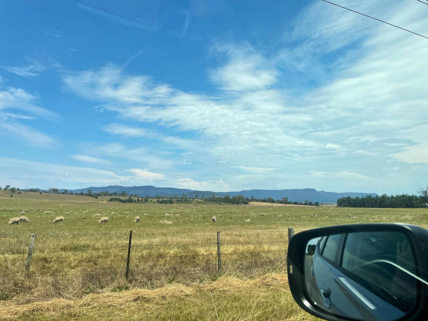 Heute geht es in den Osten von Tasmanien. Wir fahren somit einmal mitten durch das Land und dürfen die unterschiedlichen Landschaften erleben. In Tasmanien gibt es unglaublich viele Schafe. Selbst in Australien haben wir nicht so viele Schafe gesehen. So sehen wir zunächst unglaublich viel Weide-Landschaft. Man erkennt sofort, wo der Mensch mit Maschinen und Wasser nachhilft und wo nicht.