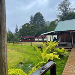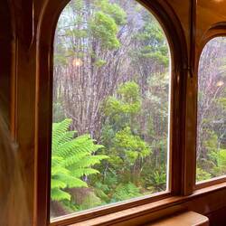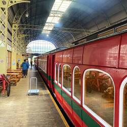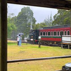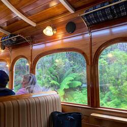 Leider wurde ein Großteil der Strecke derzeit renoviert, sodass wir nur eine kleine Runde fuhren. Es war ein Zug von damals, der restauriert wurde. Die zusätzliche Klimaanlage verlieh dem ganzen einen witzigen Touch. Da es heute regnete, war sie nicht notwendig.
