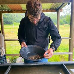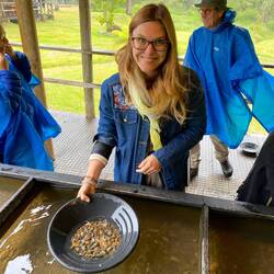Die Fahrt dauerte knapp 30 Minuten und wir kamen zu einem kleinen Bahnhof. Während der Fahrt wurden einige Fakten bezüglich der Geschichte und dem Minenarbeiterleben berichtet. An dem Bahnhof selbst konnte man unterschiedliche Steine bis Edelsteine bewundern. Es gab sogar einen Bereich, wo man nach Gold Schürfen konnte. Das Becken enthielt Gestein und Erde aus dem naheliegenden Fluss, wo auch damals nach Gold gesucht wurde.