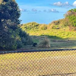 Von dort waren es knapp 160 Kilometer bis wir unser eigentliches Ziel erreichten. Mit gut zwei Stunden Fahrt war nach dem Parken ein Klo leider das erste Ziel. Neben dem Observatorium war eine Uni und auf dem Parkplatz fanden wir ein Plätzchen. Doch weit und breit kein Klo. Auch die Büsche und Co waren alle eingezäunt. So liefen wir die Promenade entlang. Dabei erblickten wir ein Wallaby und tatsächlich schon ein Zwergpinguin, der neben einem Häschen saß. Eigentlich sollte er auch erst am Abend herauskommen. Wir liefen weiter, bis wir weiter unten an der Promenade einen Spielplatz mit Toiletten fanden.