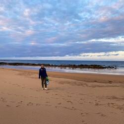 Irgendwann im Süden des Strandes fragen wir uns, wo wir eigentlich weiter kommen und sehen auf der Karte, dass der Weg im Norden des Strandes weiter geht. Sprich wir laufen die gesamte gelaufene Strandlänge zurück und die gleiche Distanz nochmal, um weiter zu kommen. Auf dem Weg fanden wir noch mehr und mehr Muscheln, sodass es nie langweilig wurde.