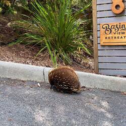 In einem der Wälder erblickten wir sogar zwei Echidna. Als sie uns hörten, gingen sie in Verteidigungsstellung und bildeten stachlige Kugeln. Erst als wir stehen blieben und kein Geräusch mehr von uns gaben, lösten sie die Kugel und wackelten langsam weiter. Es sieht so putzig aus, wenn sie laufen.