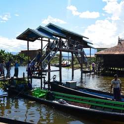 Am nächsten Tag kam dann die große Erkundungstour über den See. Wir hatten einen eigenen Bootsführer, der uns über den ganzen See fuhr. Sogar zwei Stühle waren aufgestellt, so dass wir nicht wie die Einheimischen auf dem Boden saßen. Die Burmesen sind extrem freundlich gegenüber Fremden und so wurde uns viel zugewinkt und gelächelt. Erstaunlicherweise ist auf dem See übrigens Linksverkehr, während auf der Straße Rechtsverkehr herrscht.