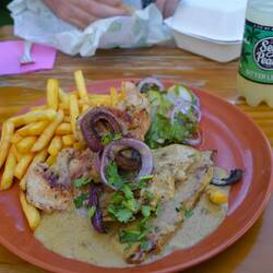 Im Süden des Strandes gibt es zwei Restaurants für die wir auch zu geizig waren und weiter auf die Ostseite der Insel fuhren, wo wir uns im kleinen KOKO ZERM richtig lecker und günstig stärkten.