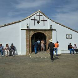 Von Andy haben wir den Tipp bekommen, daß in der Ermita de las tres Cruces heute ein Fest mit verschiedenen Flamencogruppen stattfindet. Also haben wir im Navi diese Kirche in unseren Weg zurBaca lagi