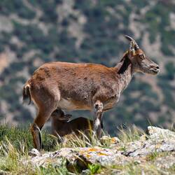 Geier sieht man hier in den Bergen immer mal aber an dieser Stelle kommen sie immer wieder zurück zu ihren Nistplätzen und starten zu neuen Flügen. Neben den Geiern war die kleine Bergziege einBaca lagi