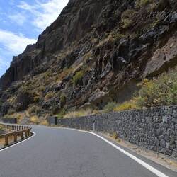Die GC 210 verläuft weiter durch die enge Schlucht bis zum zweiten Stausee. Danach wird es offener bis nach La Aldea de San Nicolas, wo wir für 14€ zwei leckere Pizzen inclusive 2 Getränke bekamen.