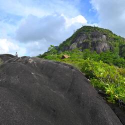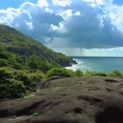 Von hier hat man eine tolle Aussicht auf die Bucht von Beau Vallon und die Nord-West Küste von Mahé. Und man hat das Gefühl, dass die ganze Insel ein einziger Granitblock ist.