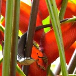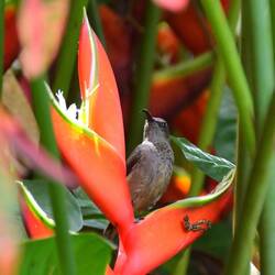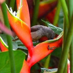 Heute Morgen sind Anja noch ein paar Fotos gelungen, wie sich der Seychellen Nektarvogel an der Heliconia stärkt.