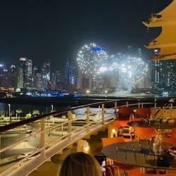 Nach einem entspannten Tag auf See, sind wir am Abend in Abu Dhabi angekommen. Die Stadt ist bei Nacht genauso sehenswert wie am Tag.