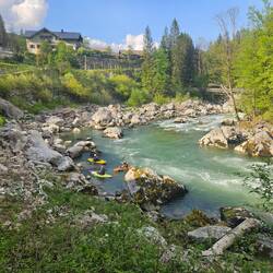The water levels are quite low, so our choice of rivers is pretty limited. Instead of paddling close to our holiday home in Werfenweng, most days we drive out to Saalach river (Lofer and around):