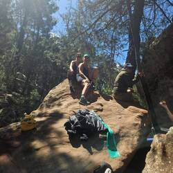 Our week in Albarracin starts off with sunshine and a relaxed atmosphere (,/the guys have already done some hard bouldering in the past few days, so they're happy to just chill with us and so someLeia mais