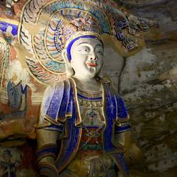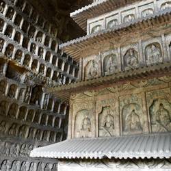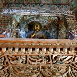 Teilweise sind Tempel vor die Grotten gebaut.