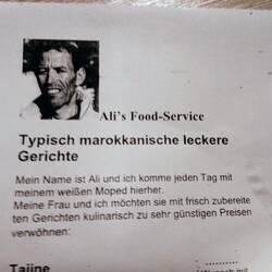 Abends kam Ali vorbei, seine Frau kocht und er bringt es dann ans Wohnmobil. Wir bestellen für morgen Abend Tajine und Kuchen. Da sind wir Mal gespannt.Lue lisää