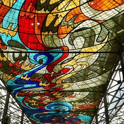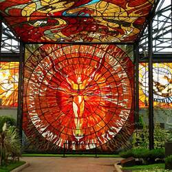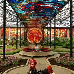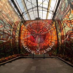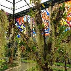 Schon von weitem sieht man die Buntglasfenster des Botanischen Gartens.