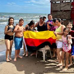 Von allen Seiten werden wir freundlich beobachtet. Direkt hinter uns sitzt eine große Familie und winkt uns zu, wir sollen ein Photo zusammen machen. Leider spricht niemand englisch, aber alle lachen und wir schenken Ihnen eine Deutschlandflagge, die wir noch dabei hatten.