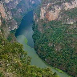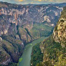 Den Cañón del Sumidero kann man per Boot von unten oder / und per Auto von oben erkunden.