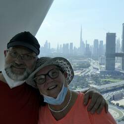 Nach 6 Std Flug kommen wir mit 45min Verspätung in Dubai an. Hier ist es jetzt 0:45 Uhr.