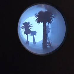 Außen sehr schön, innen geht es im Nebel auf die Berge, sehr schön umgesetzt.