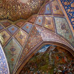Als nächstes sind wir auf der gegenüberliegenden Seite in den Ali Qapu Palast. Hier gibt es eine große Terrasse mit toller Aussicht.