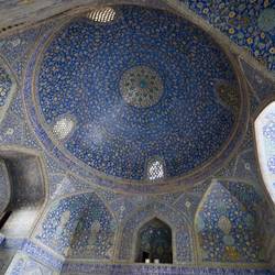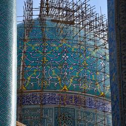 Tabriz ist zwei Mal von einem Erdbeben zerstört worden. Auch die blaue Moschee war davon betroffen. Inzwischen hat man die Kuppeln wieder aufgebaut. Das Mosaik ist nur in Teilen erhalten.