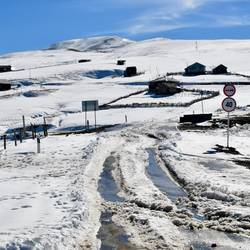 Wir entscheiden uns für links. Zuerst geht die Straße noch, doch dann wird sie immer schlechter. Wir biegen zweimal rechts ab und stehen wieder an der Straße die gesperrt ist. Wir sollen wieder zurück.