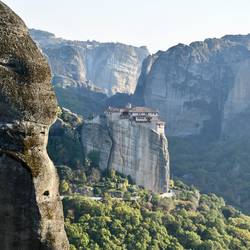 Agios Stéphanos: Das 1312 gegründete Kloster wird ebenfalls noch bewohnt. Die Besiedlung des Felsens ist aber wohl älter. Bis 1927 war eine Inschrift erhalten geblieben, die auf eine Einsiedelei im Jahr 1192 schließen lässt. Im 19. Jahrhundert lebten noch mehr als 30 Mönche im Kloster, mit abnehmender Tendenz. Im Jahr 1960 war es praktisch verlassen und wurde 1961 in ein Frauenkloster umgewandelt.Leggi altro