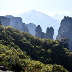 Dann geht es wieder nach Westen. Nach 400 km erreichen wir Meteora, die schwebenden Klöster.