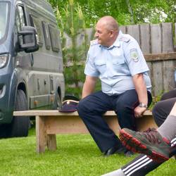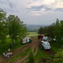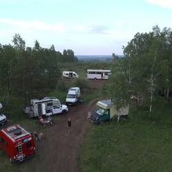 Nach dem Abendessen gab es an unserem Stellplatz in der Nähe von Kansk auf einem Hügel mit sehr schönen Blick auf die Stadt noch ein Lagerfeuer mit Vodka und Stockbrot.
