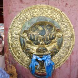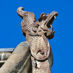 Weiter ging man durch ein Tor wieder aus der Anlage heraus zu einer großen Steinschildkröte.