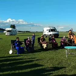 Nach unserem Meeting tritt noch eine Musikgruppe auf. Auf traditionellen Mongolischen Instrumenten spielen Sie und dazu Ober- und Unterton Gesang.