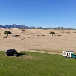 Nun stehen wir direkt an den Sanddünen. Wahnsinn.